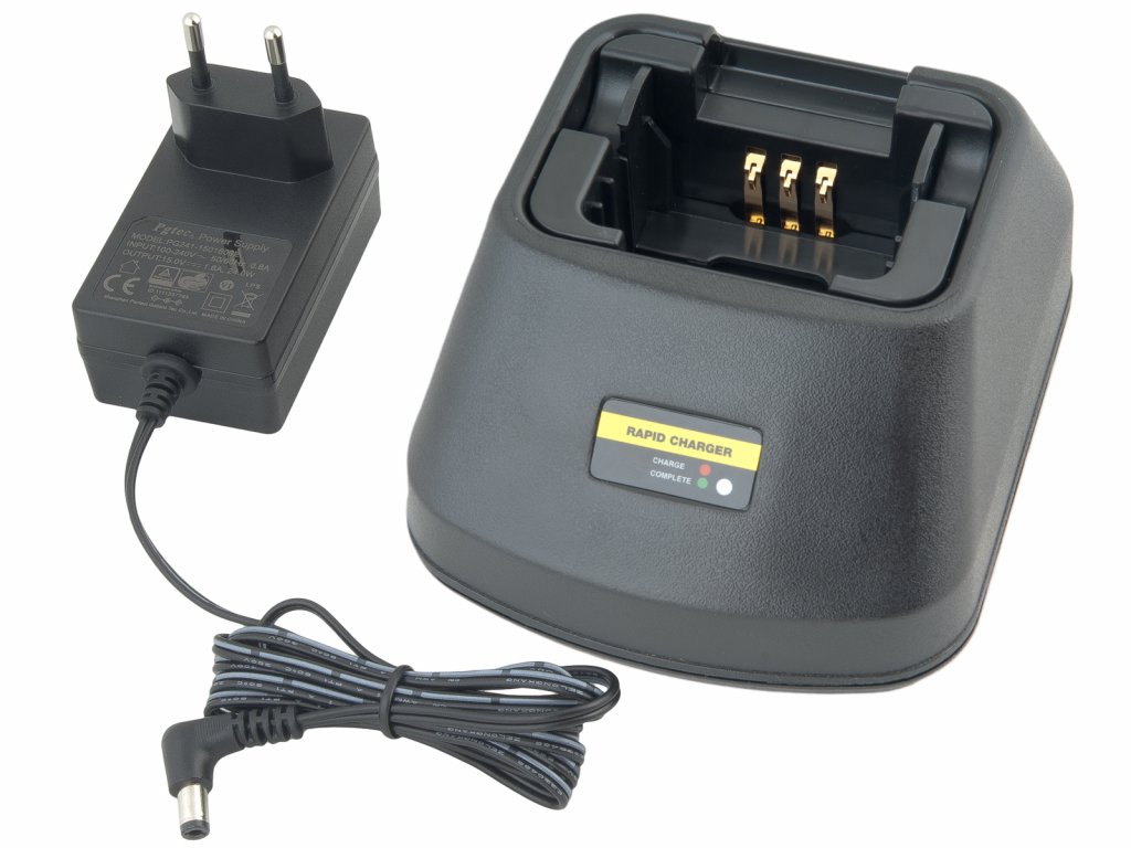 Nabíječ je určený pro nabíjení baterií pro radiostanice (vysílačky) Motorola řady CP (Motorola CP040, CP140, CP160 a CP180) a také řady DP1000 (DP1400) a Motorola R2.