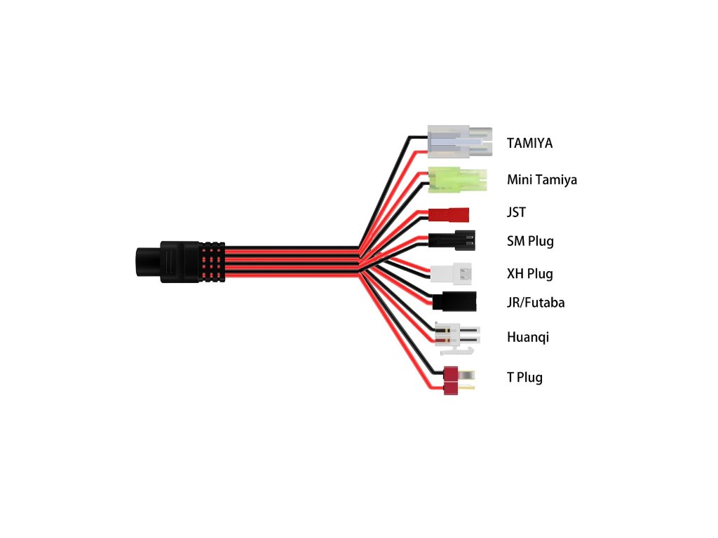 Všestranný nabíječ pro nabíjení všech baterií RC, RC letadel a airsoftových baterií 2,4 V, 3,6 V, 4,8 V, 6 V, 7,2 V, 8,4 V, 9,6 V, 10,8 V a 12 V. |